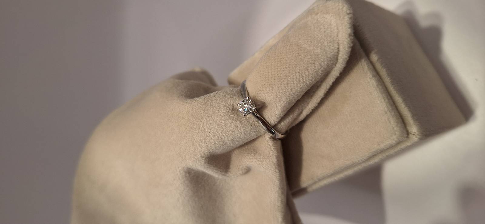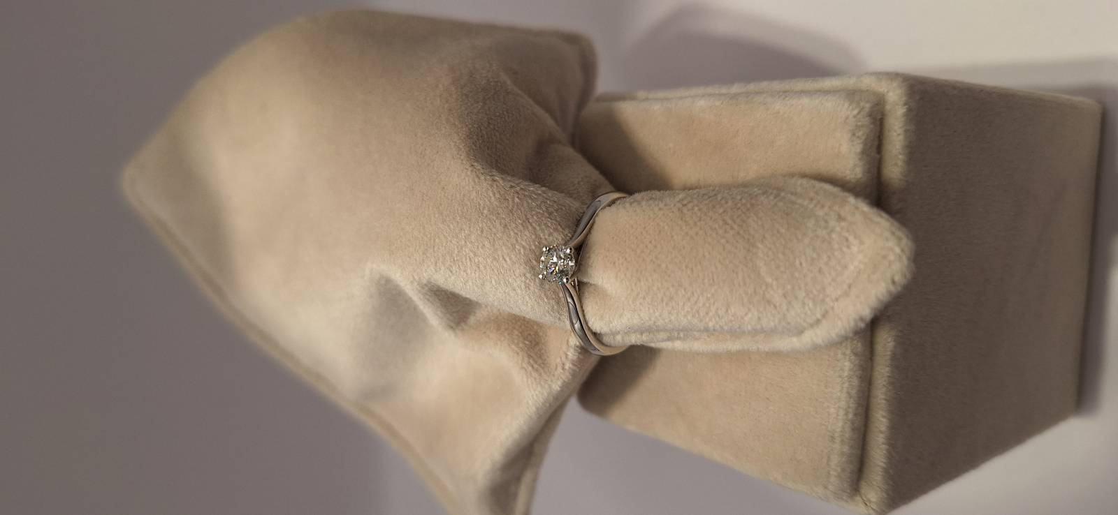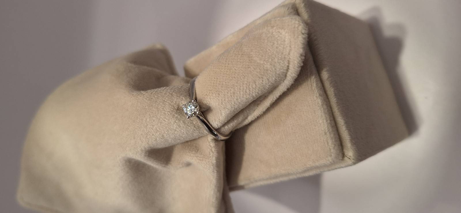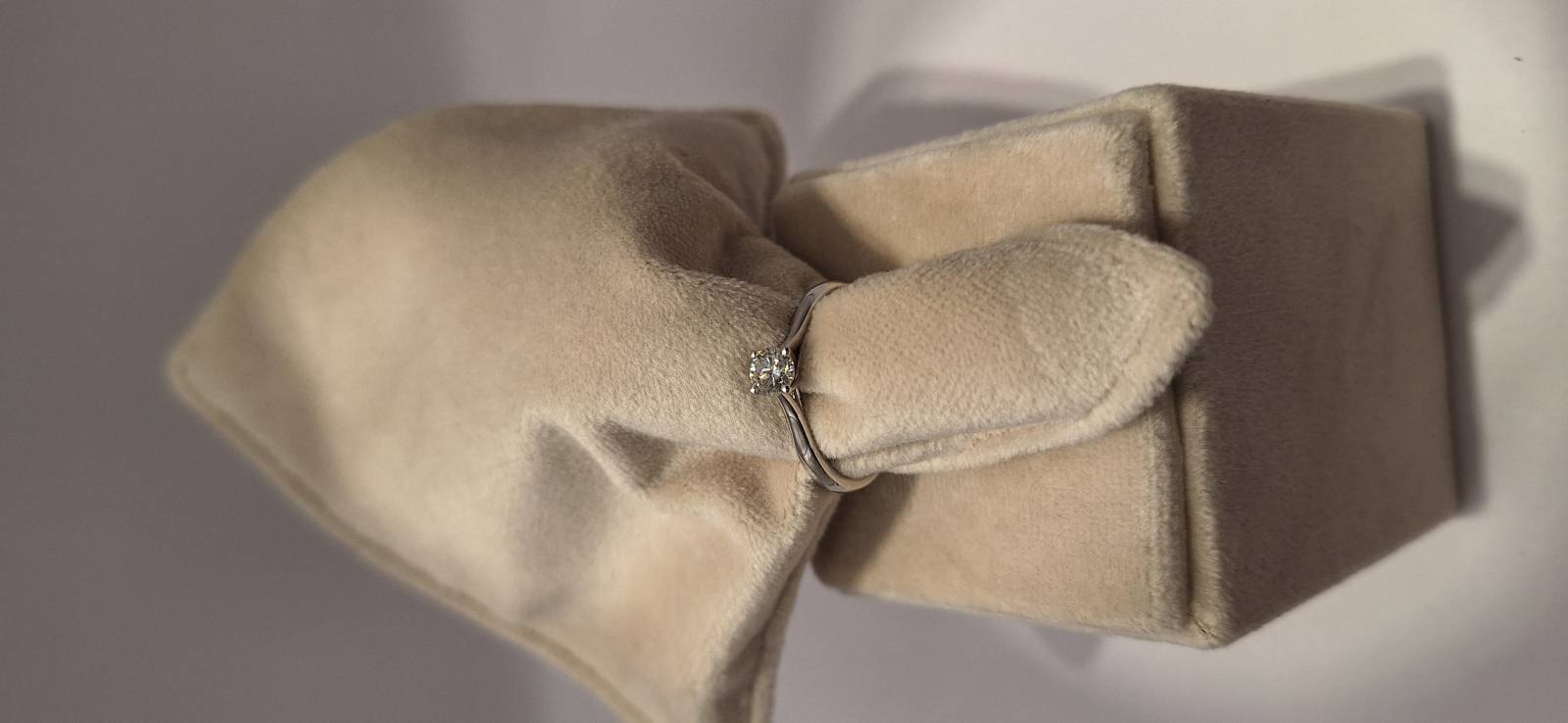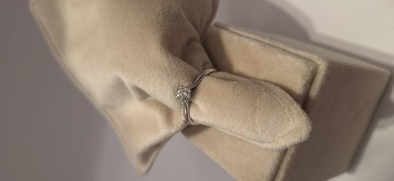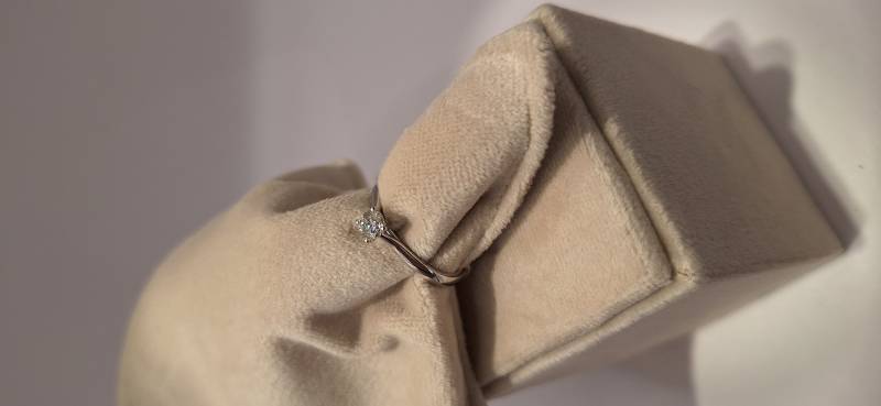 Delizioso anello in oro bianco 18 Kt composto da una sottile fedina con al centro un castone a quattro griffes che trattengono un solitario di ct 0,40 colore G, purezza VS. L'anello raffigurato è misura 15 ma può essere realizzato anche in misure diverse. L'anello è accompagnato da garanzia di originalità Giorgio Visconti oltre che da certificato di assicurazione contro i furti valido un anno dall'acquisto.