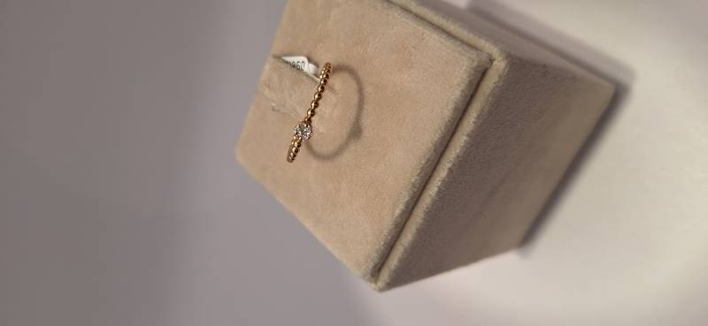 Delizioso anello in oro rosa 18 Kt composto da una sottile fedina lavorata "a palline" con incassati al centro cinque brillanti disposti a rosellina per un totale di ct 0,05. Il modello può essere realizzato anche in oro giallo o oro bianco. Disponibile in qualsiasi misura di dito.