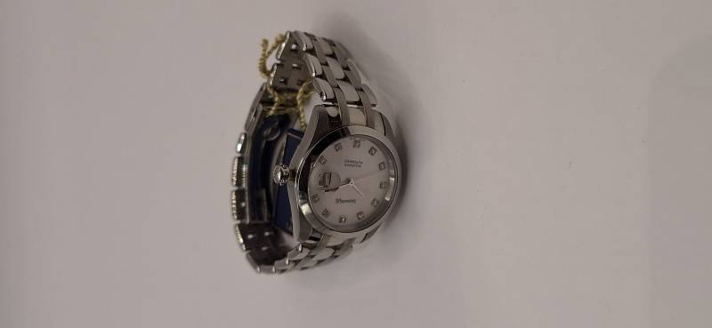 Declinazione al femminile del celebre Aquadate di Eberhard, l'orologio a carica automatica ha un diametro di 29 mm, bracciale in acciaio modello Charme, cassa serrata da un fondello chiuso da sei viti e corona a vite. Il vetro è zaffiro e presenta ad ore 3 una lente per facilitare la lettura della data. E' perfetto per un uso sportivo ma al tempo stesso presenta note di squisita eleganza avendo il quadrante in madreperla con applicati undici diamanti per un totale di ct 0,0913.