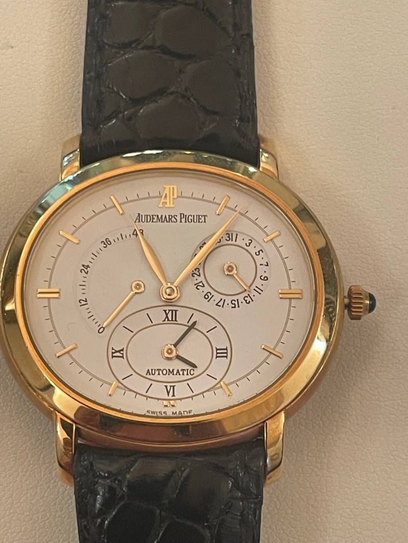 Elegante orologio con movimento a carica automatica cal. 2229 in grado di indicare oltre ad ore e minuti anche la riserva di carica ed un secondo fuso orario.
