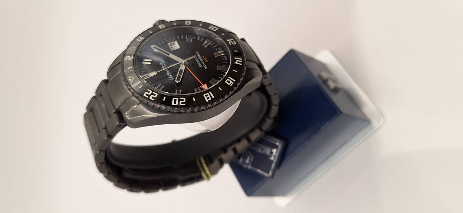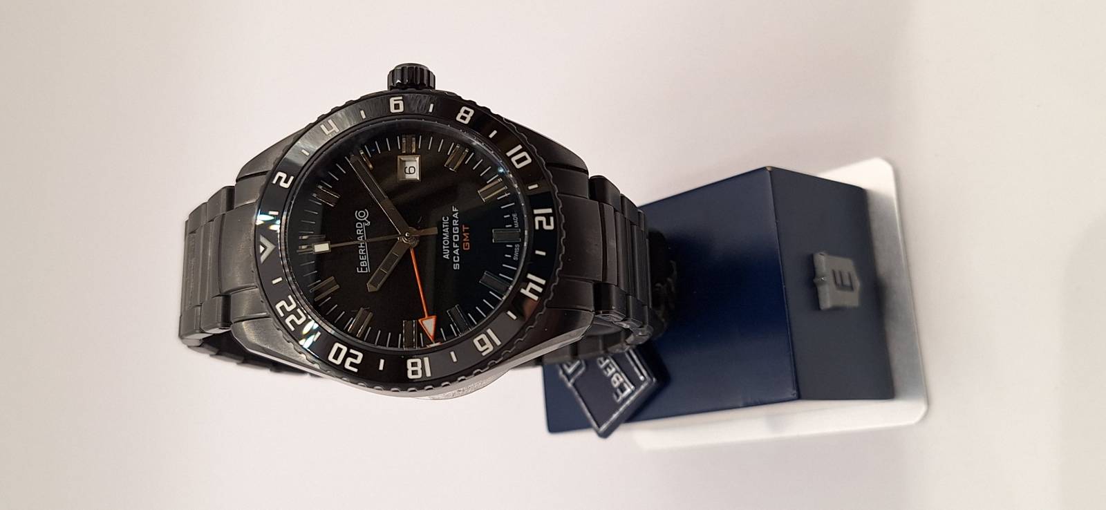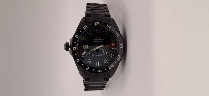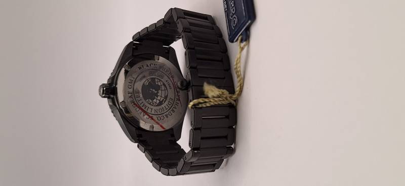 Edizione in serie limitata di 500 pezzi dello Scafograf GMT con cassa e bracciale trattati al PVD. Orologio meccanico a carica automatica con cassa di diametro 43 mm. Grazie alla lunetta esterna girevole bidirezionale con inserto in ceramica indicante le 24 ore permette di conoscere l'ora di due fusi orari a scelta oltre all'ora locale. La corona ed il fondello avvitati permettono un'impermeabilità fino a 100 metri. Il vetro zaffiro bombato con trattamento antiriflesso e le lancette e gli indici ad alta luminescenza facilitano la visibilità notturna.