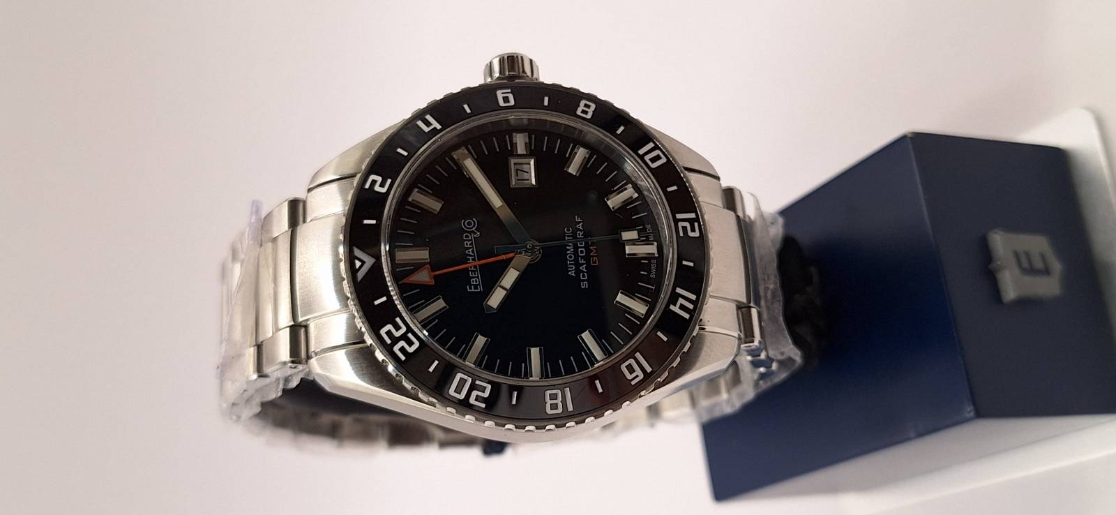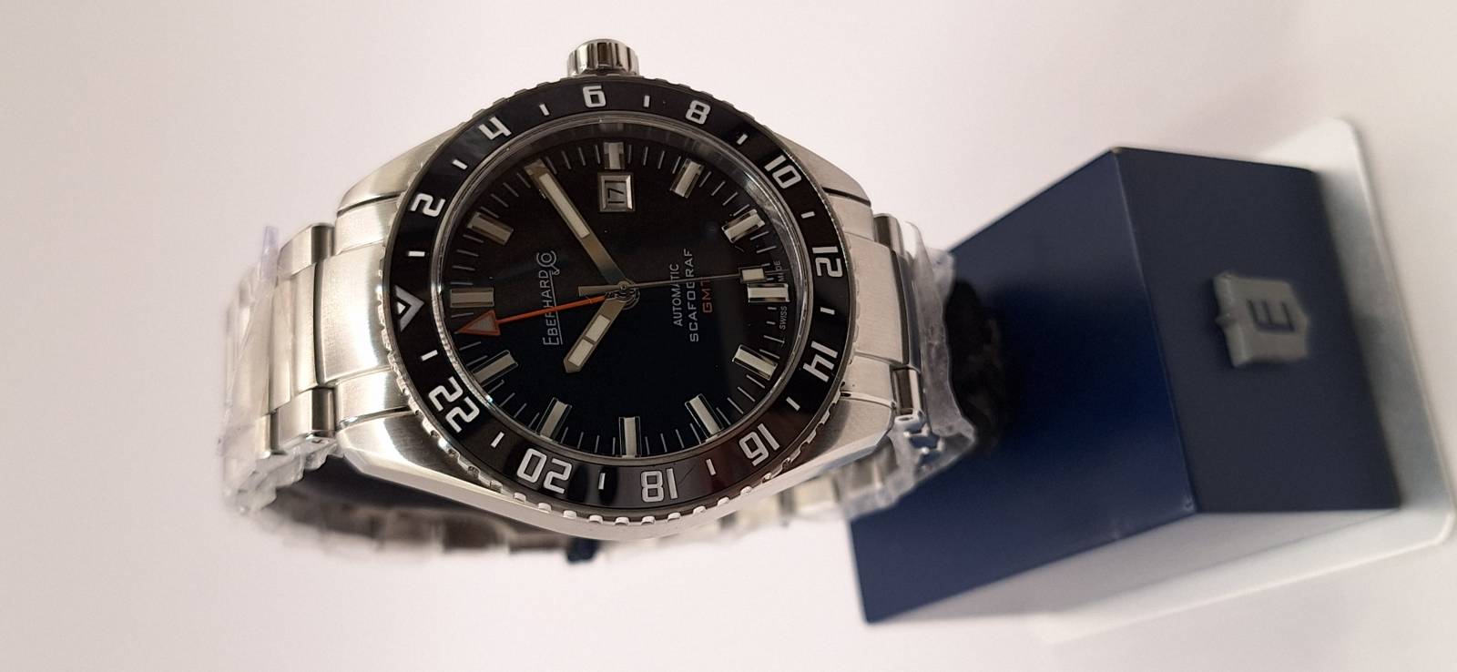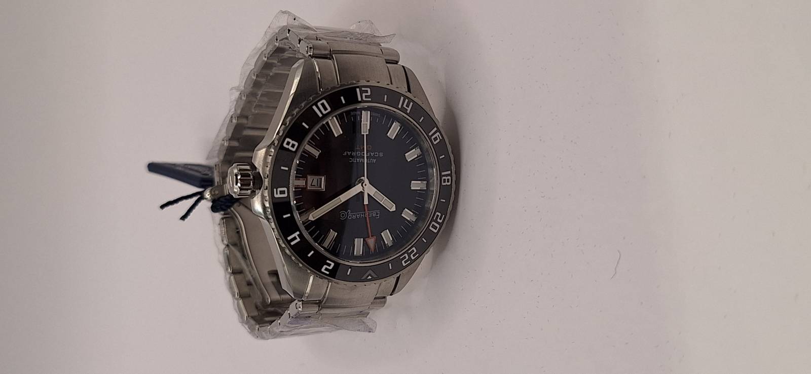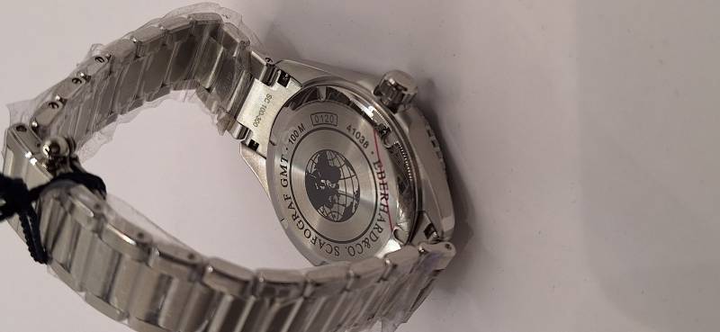 Lo Scafograf GMT è un orologio meccanico a carica automatica con cassa di diametro 43 mm. Grazie alla lunetta esterna girevole bidirezionale con inserto in ceramica indicante le 24 ore permette di conoscere l'ora di due fusi orari a scelta oltre all'ora locale. La corona ed il fondello avvitati permettono un'impermeabilità fino a 100 metri. Il vetro zaffiro bombato con trattamento antiriflesso e le lancette e gli indici ad alta luminescenza facilitano la visibilità notturna.