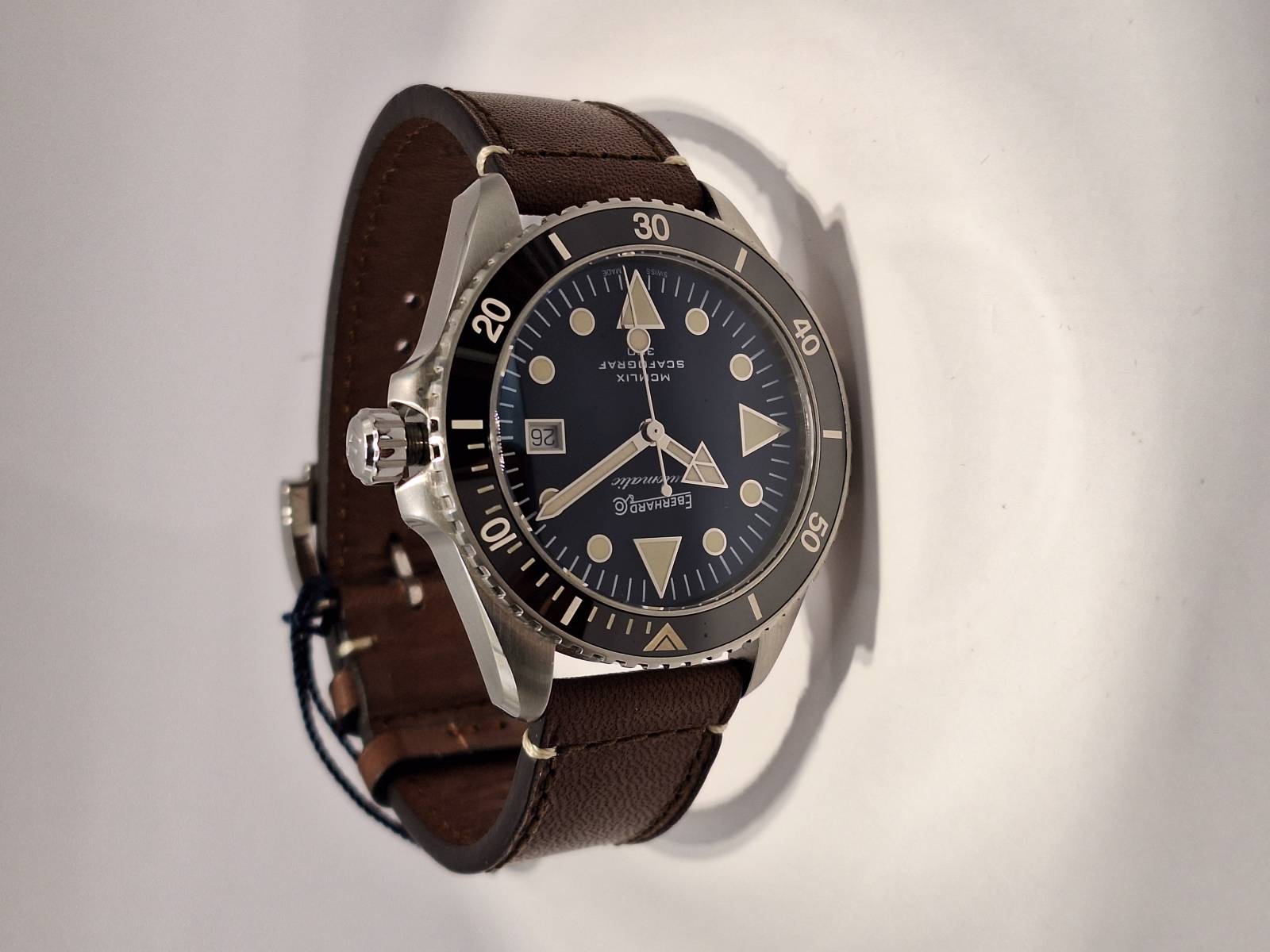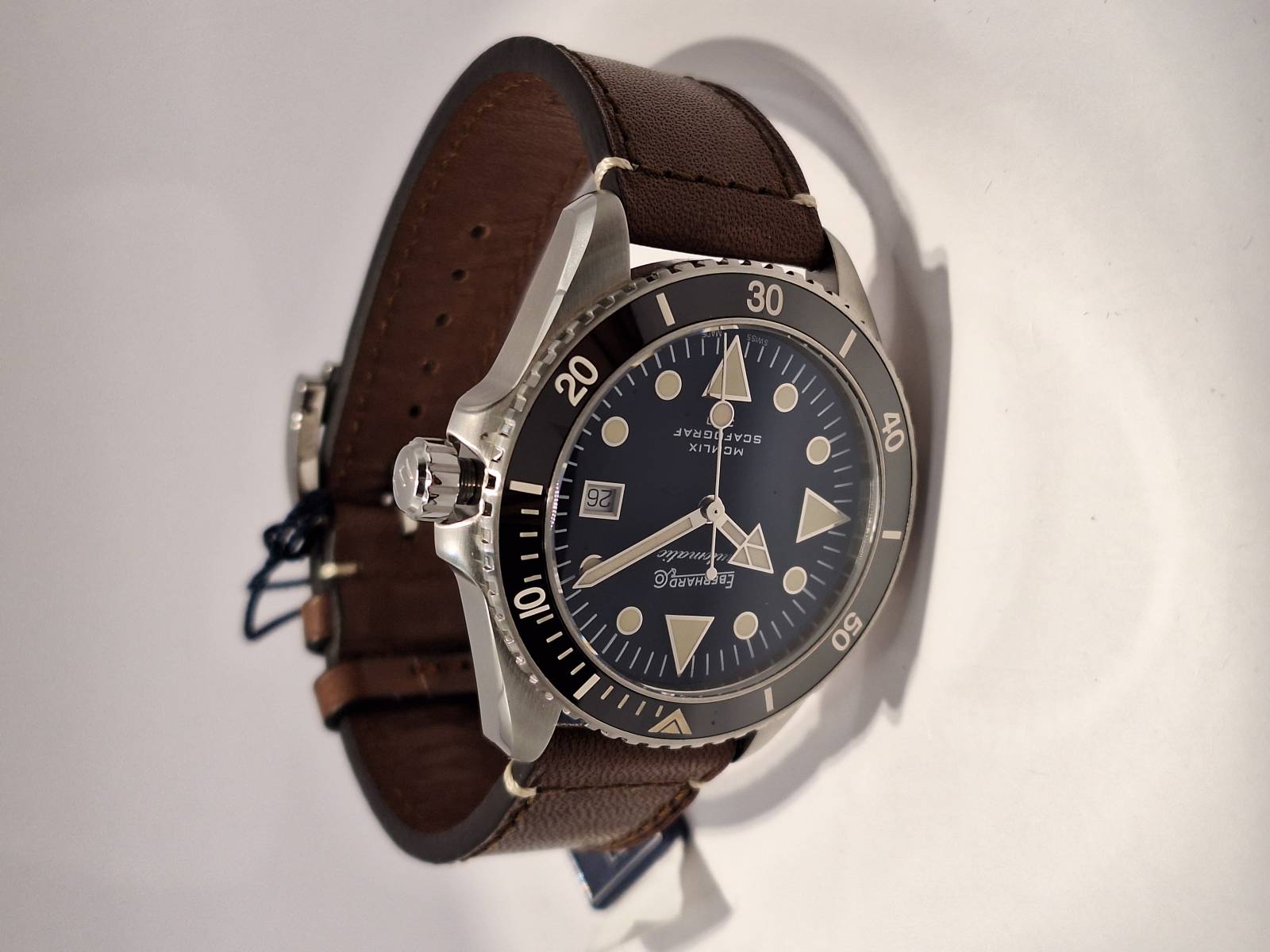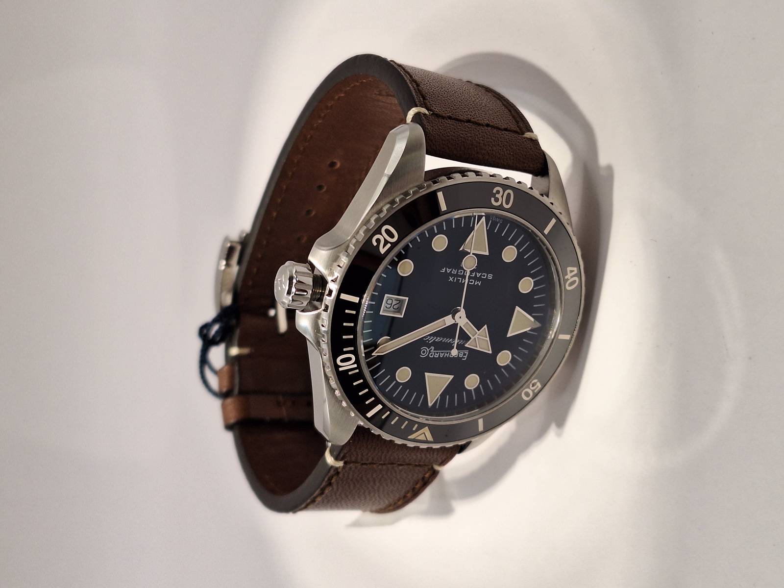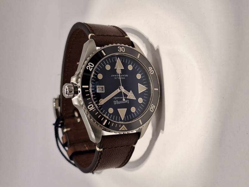 Omaggio all'anno di presentazione della collezione Scafograf, il MCMLIX è un orologio subacqueo a carica automatica con datario al 3. La cassa in acciaio diametro 43 mm ospita una valvola per il rilascio automatico dell'elio ed ha il fondello avvitato personalizzato con l'incisione di una stella marina simbolo della collezione. L'ulteriore presenza della corona a vite garantisce un'impermeabilità fino a 300 metri. Vetro zaffiro convesso con trattamento antiriflesso e lunetta esterna unidirezionale per i tempi di immersione in acciaio con inserto in ceramica e scala sessagesimale. Le lancette e gli indici sul quadrante sono ad alta luminescenza per facilitare la lettura durante le immersioni