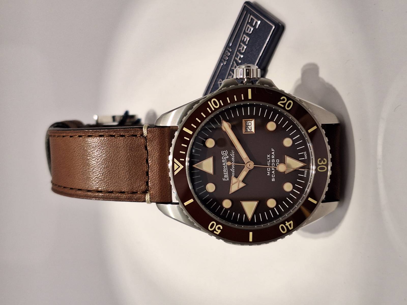Omaggio all'anno di presentazione della collezione Scafograf, il MCMLIX è un orologio subacqueo a carica automatica con datario al 3. La cassa in acciaio diametro 43 mm ospita una valvola per il rilascio automatico dell'elio ed ha il fondello avvitato personalizzato con l'incisione di una stella marina simbolo della collezione. L'ulteriore presenza della corona a vite garantisce un'impermeabilità fino a 300 metri. Vetro zaffiro convesso con trattamento antiriflesso e lunetta esterna unidirezionale per i tempi di immersione in acciaio con inserto in ceramica e scala sessagesimale. Le lancette e gli indici sul quadrante sono ad alta luminescenza per facilitare la lettura durante le immersioni