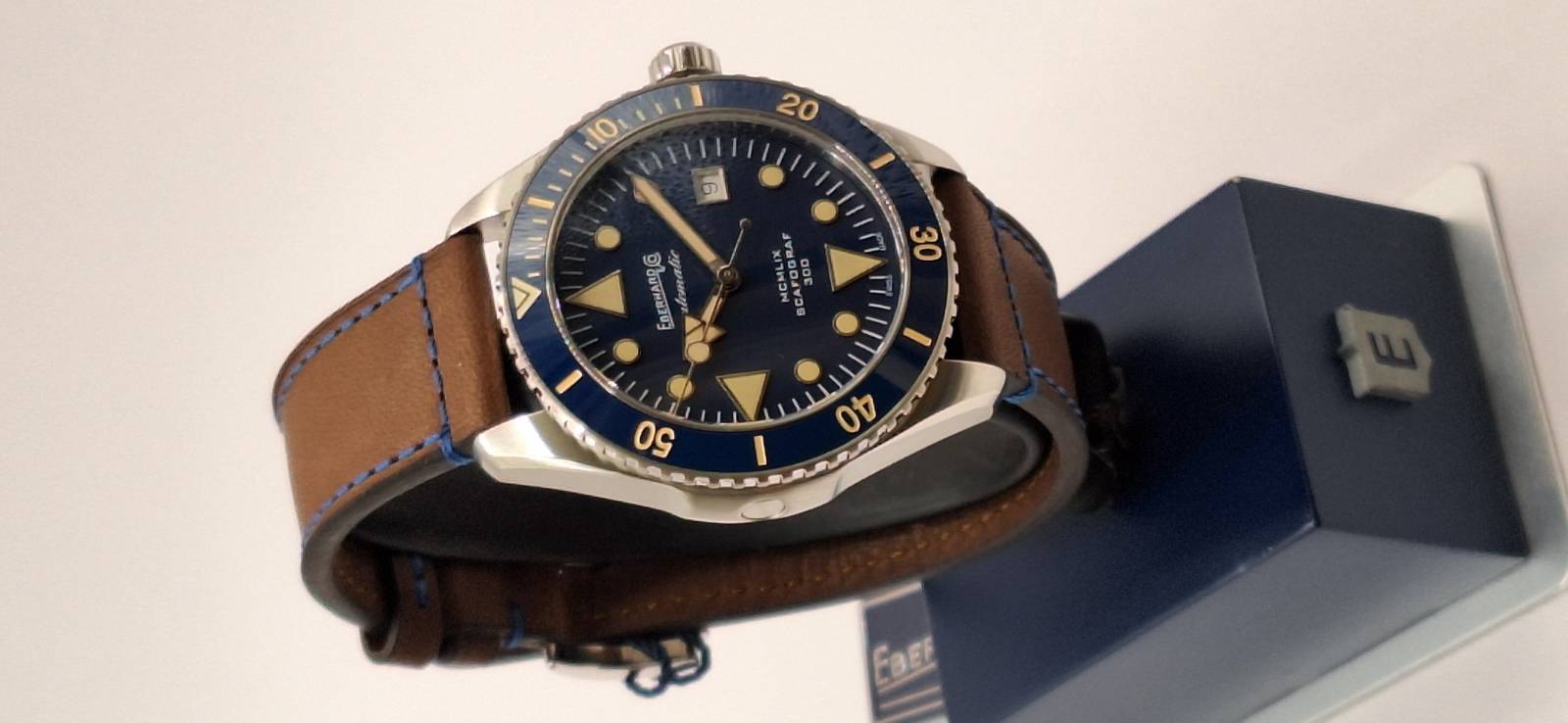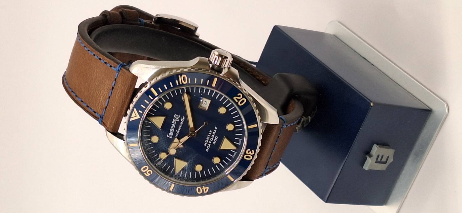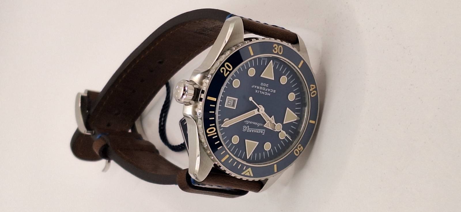 Omaggio all'anno di presentazione della collezione Scafograf, il MCMLIX è un orologio subacqueo a carica automatica con datario al 3. La cassa in acciaio diametro 43 mm ospita una valvola per il rilascio automatico dell'elio ed ha il fondello avvitato personalizzato con l'incisione di una stella marina simbolo della collezione. L'ulteriore presenza della corona a vite garantisce un'impermeabilità fino a 300 metri. Vetro zaffiro convesso con trattamento antiriflesso e lunetta esterna unidirezionale per i tempi di immersione in acciaio con inserto in ceramica e scala sessagesimale. Le lancette e gli indici sul quadrante sono ad alta luminescenza per facilitare la lettura durante le immersioni