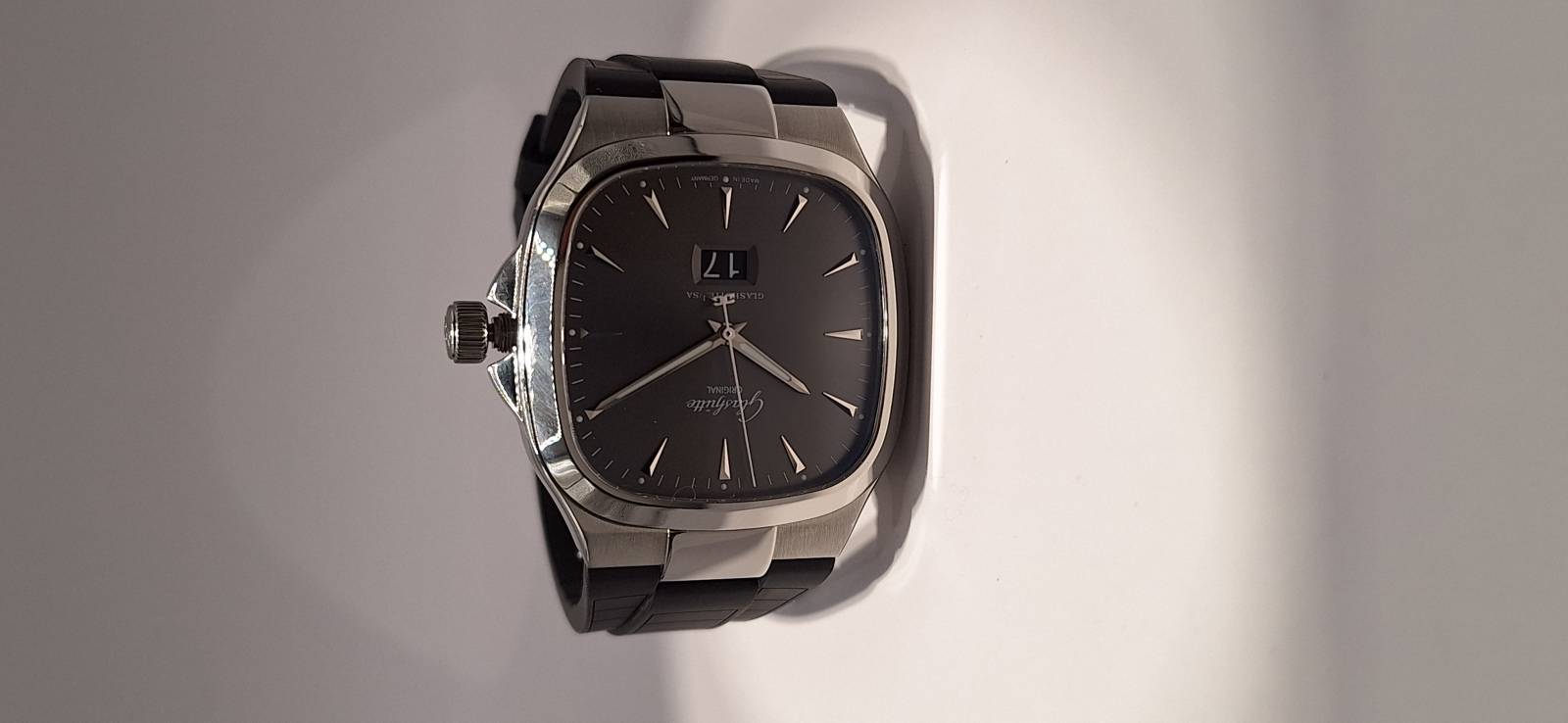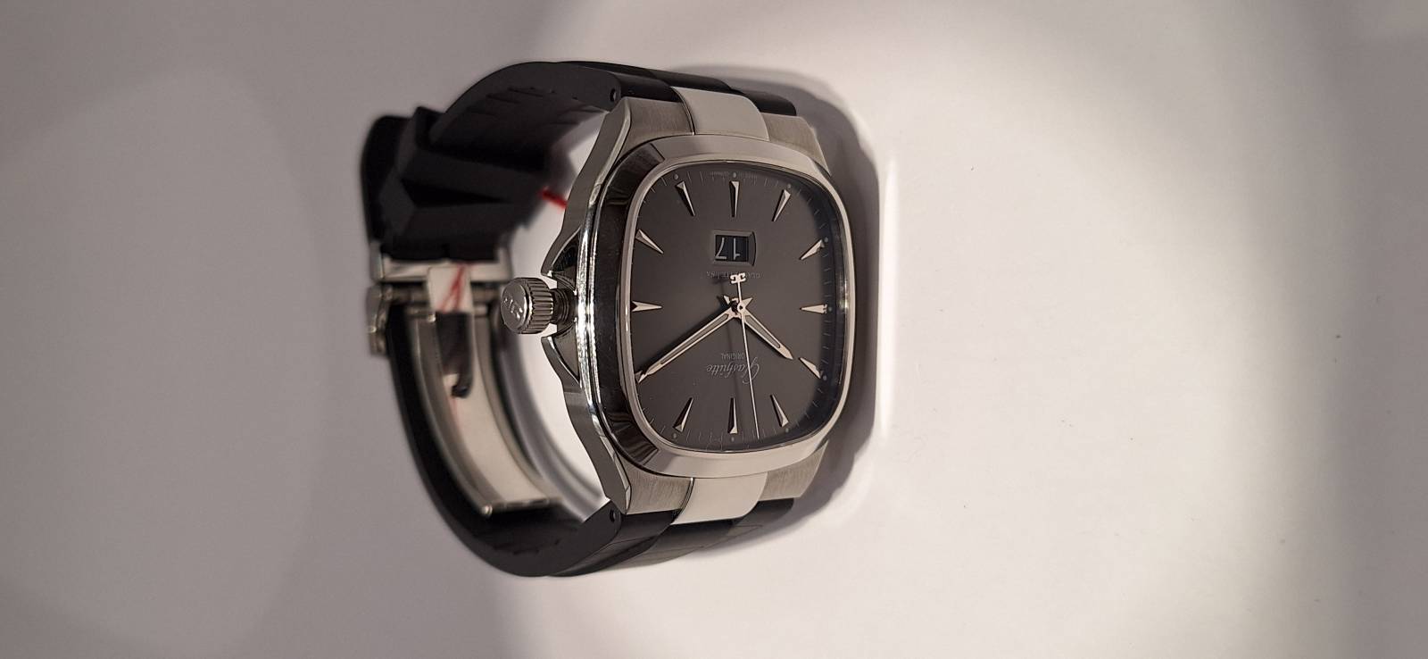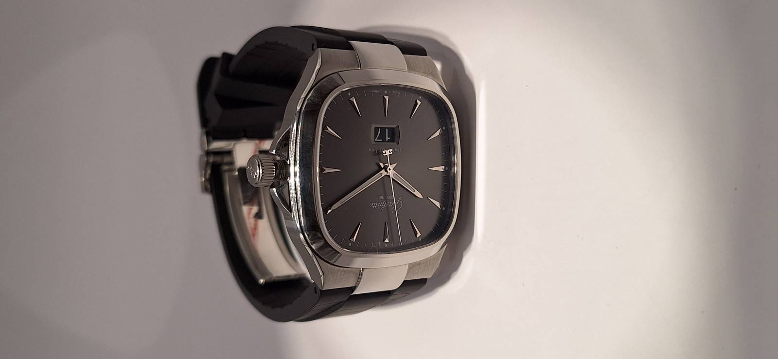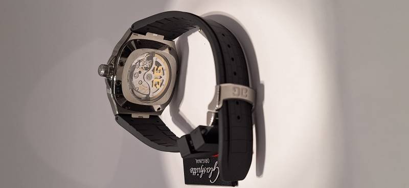 Orologio nuovo; carica automatica con riserva di carica di 40 h; fondello zaffiro chiuso da viti; corona a vite; impermeabilità a 10 atmosfere, cassa mm 40; spessore mm 11,5; calibro 39-47 di manifattura; regolazione a collo di cigno; rotore scheletrato con applicazioni in oro 21 kt